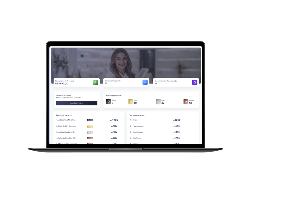 É um sistema em que o paciente acumula pontos ao realizar ações como consultas, procedimentos, compras ou indicações de amigos. Esses pontos podem ser trocados por recompensas que a própria clínica define, como descontos, brindes ou procedimentos especiais.