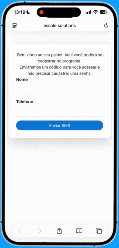 Com nome e celular, o paciente de cadastra e acessa seu painel.